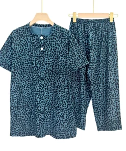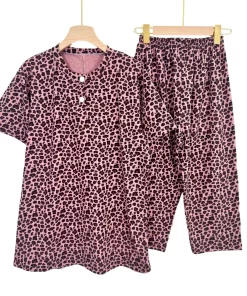 🟠 Short-sleeve top with button detail and flowy capri pants – ideal for summer lounging