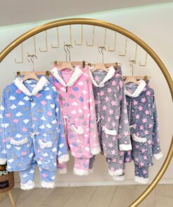 A super-soft women’s mohair pyjama set with a cozy zipper hoodie and matching pants. Designed with a cute cloud pattern for a warm and relaxed winter feel. The inner lining is extra fluffy for maximum comfort. Perfect for chilly nights and home relaxation.