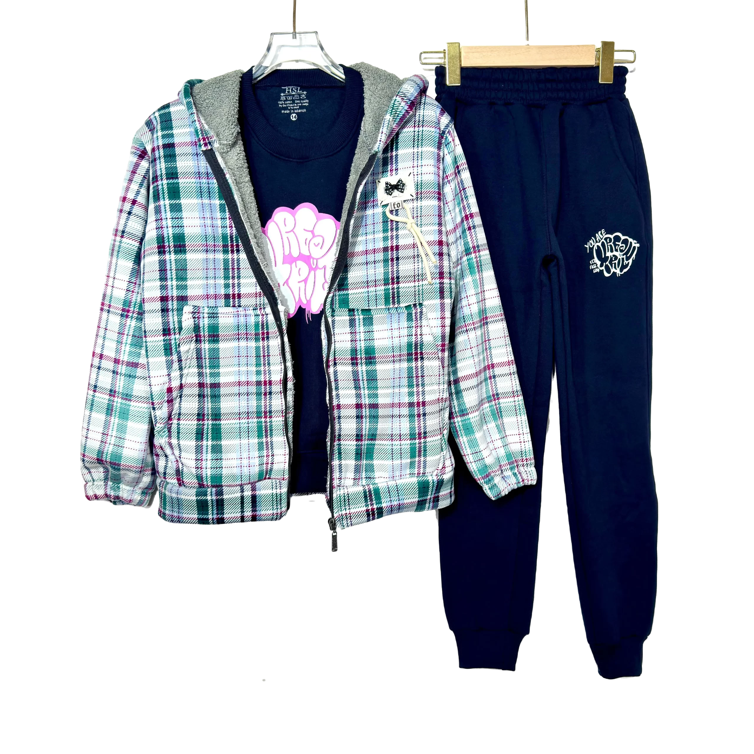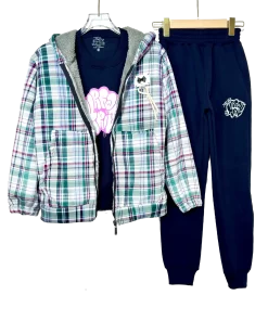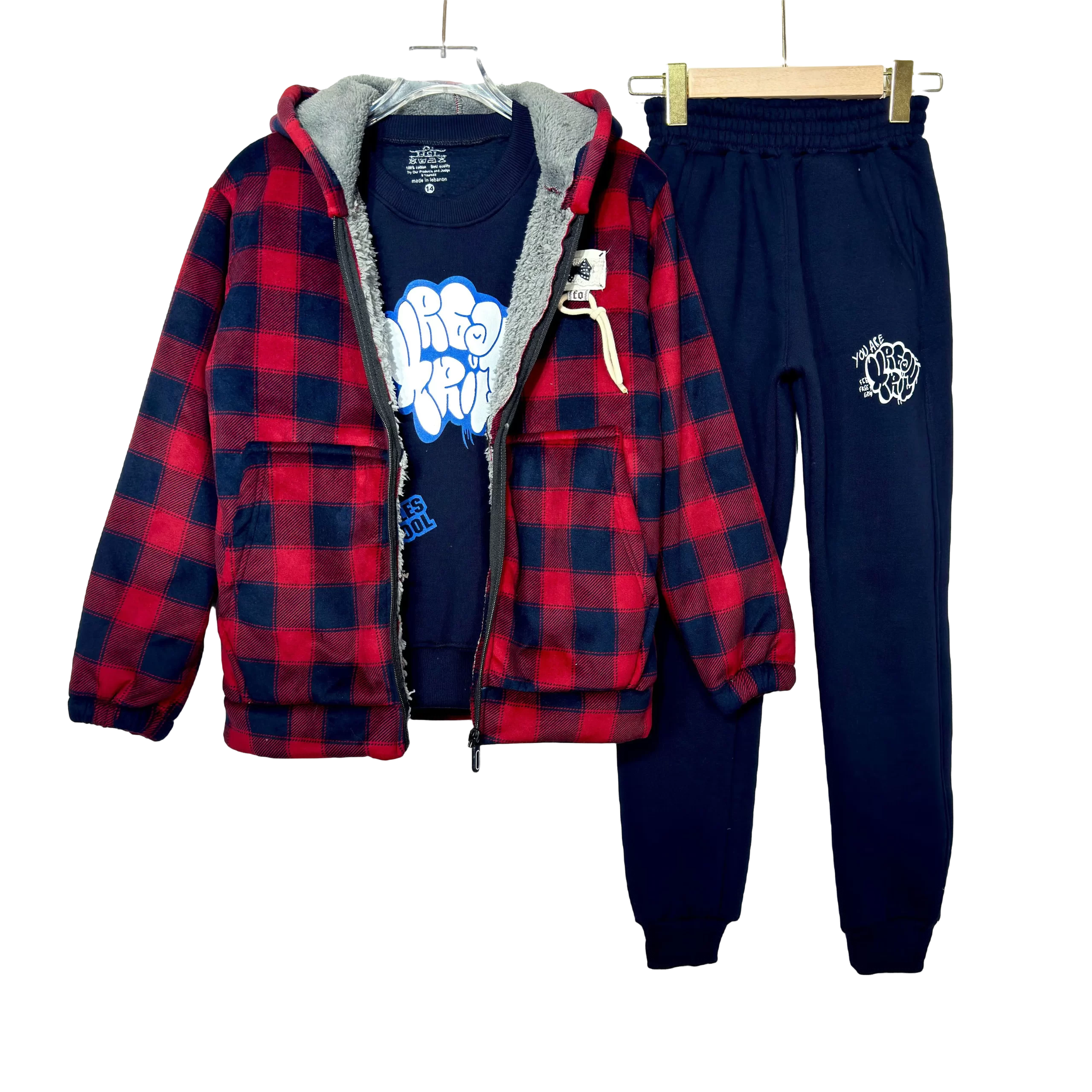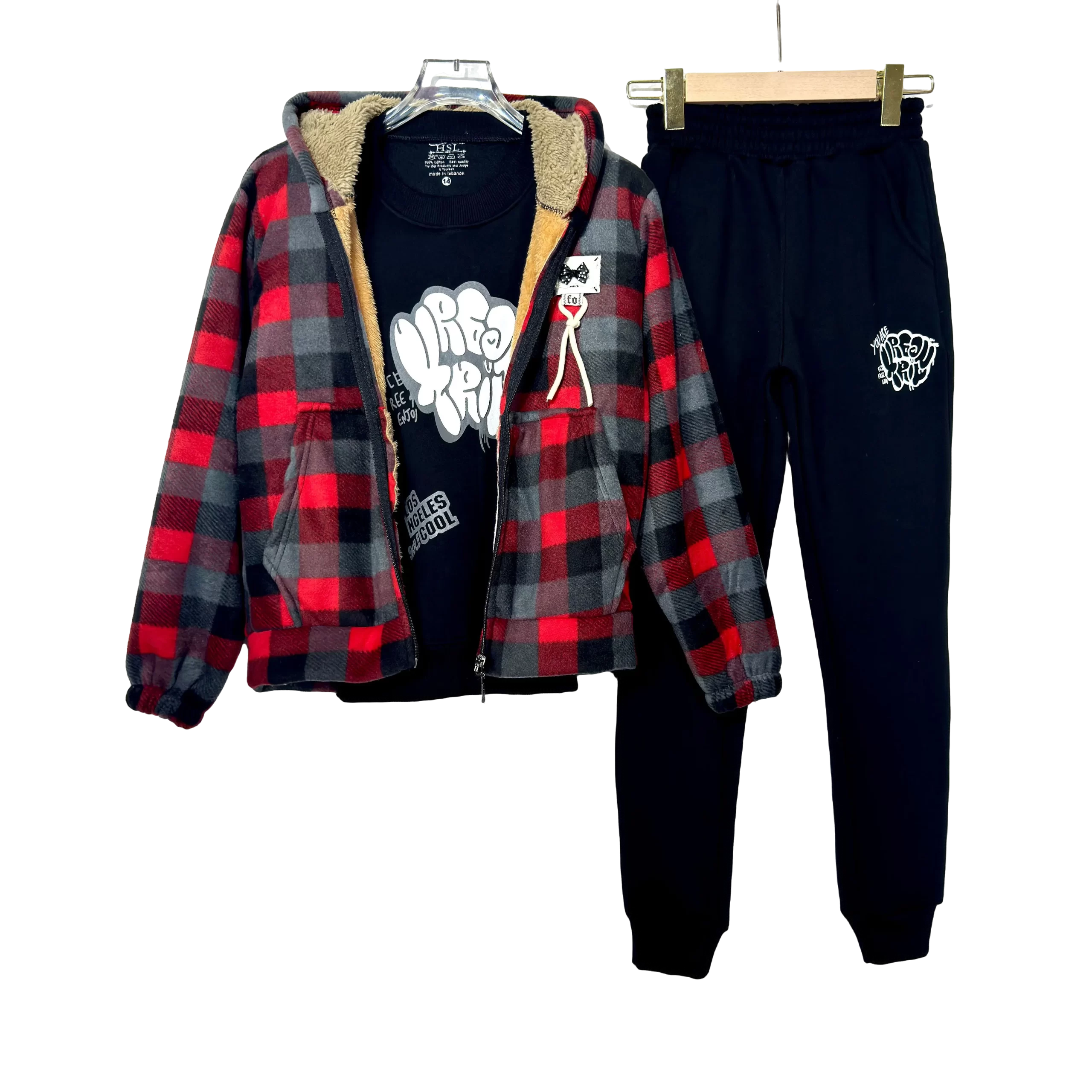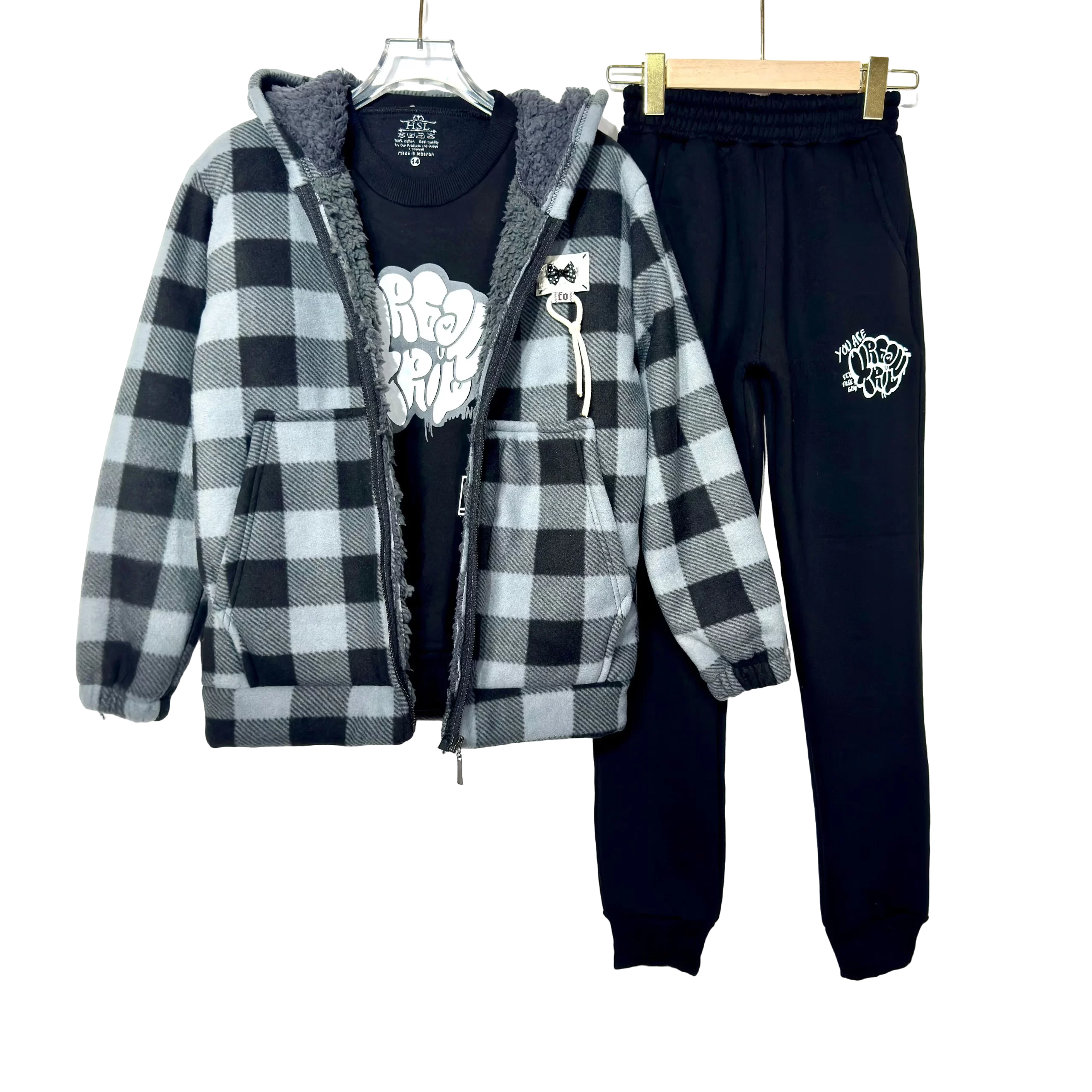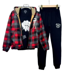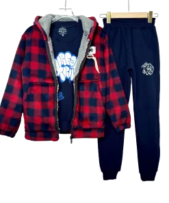 Cozy and trendy Fur Fleece Carreaux Teens Set, perfect for warmth and modern style.