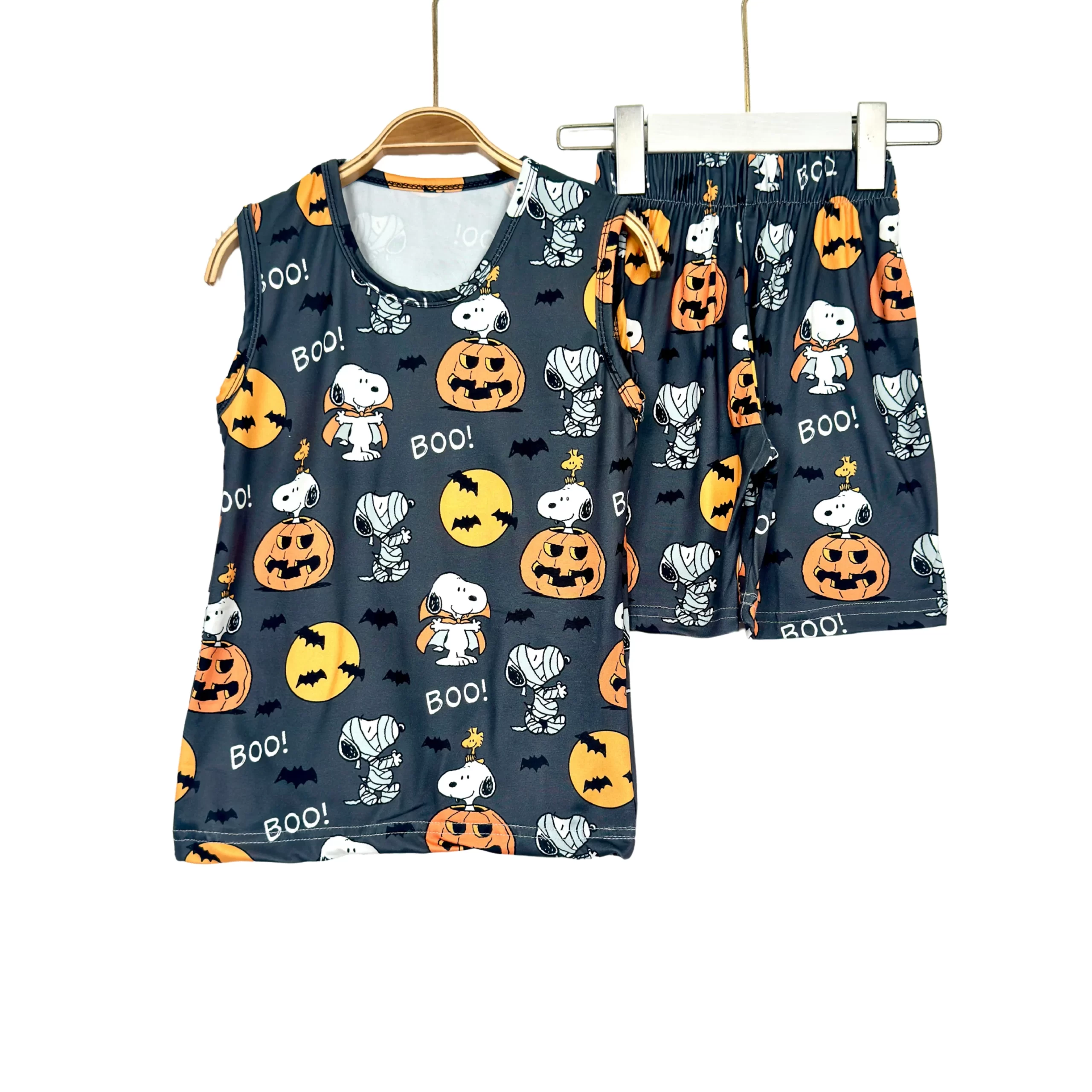 “Fun and breezy Kid’s Cotton Sleeveless Summer Pajama Set with unisex cartoon prints for cool nights.”