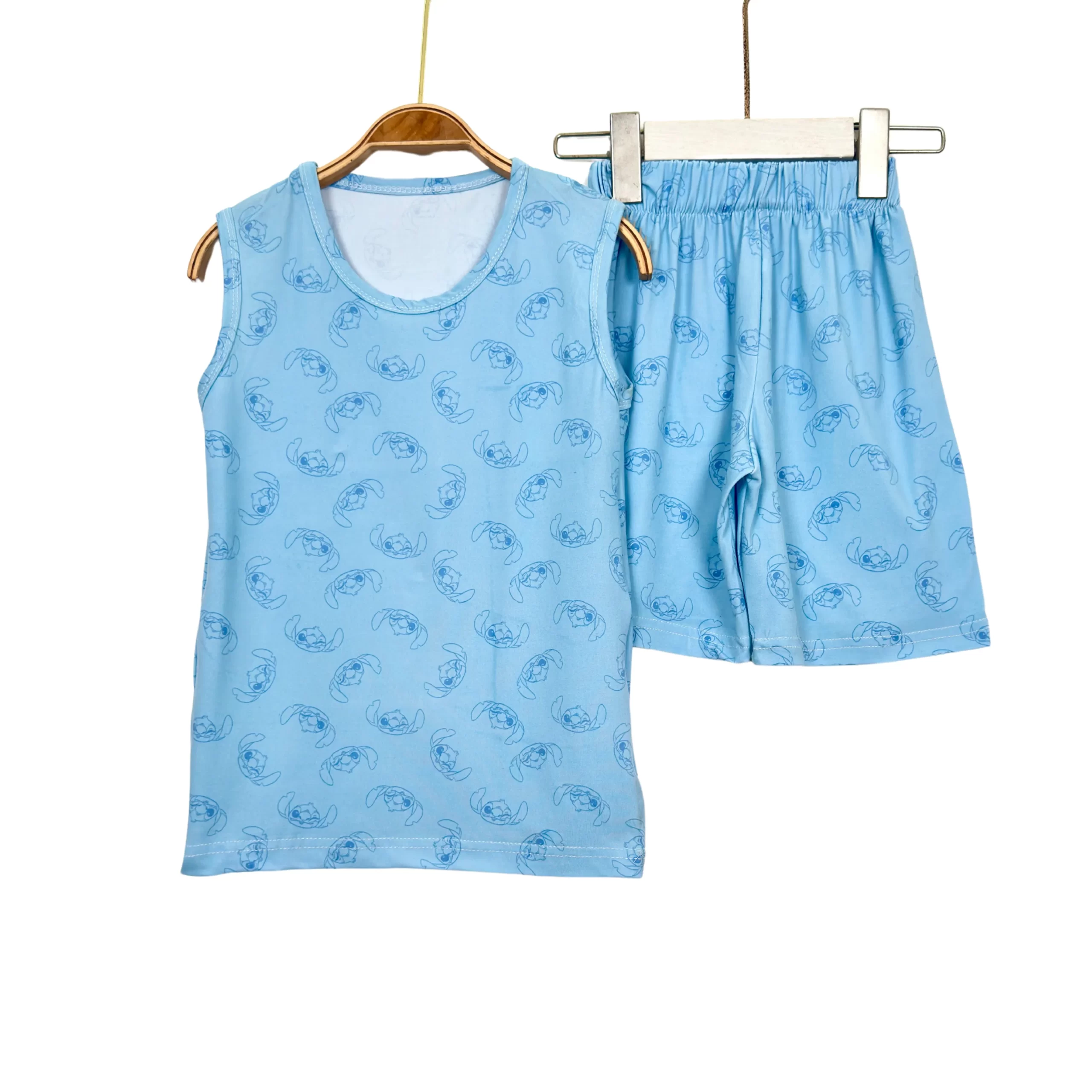 Kid’s Cotton Sleeveless Summer Pijama Set – Unisex Cartoon Prints