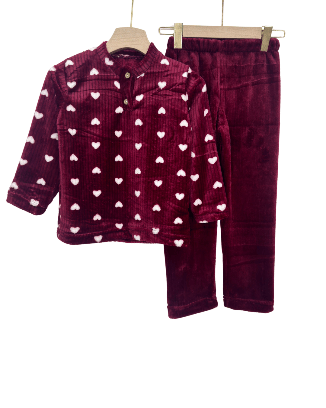 Kid’s Mohair Pajama Set with HEART Print – Soft Cozy Winter Wear