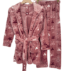 The top includes stylish wooden buttons and a cozy high-neck design, matched with warm full-length pants. Ideal for home, sleep, and everyday comfort.