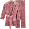 The top includes stylish wooden buttons and a cozy high-neck design, matched with warm full-length pants. Ideal for home, sleep, and everyday comfort.