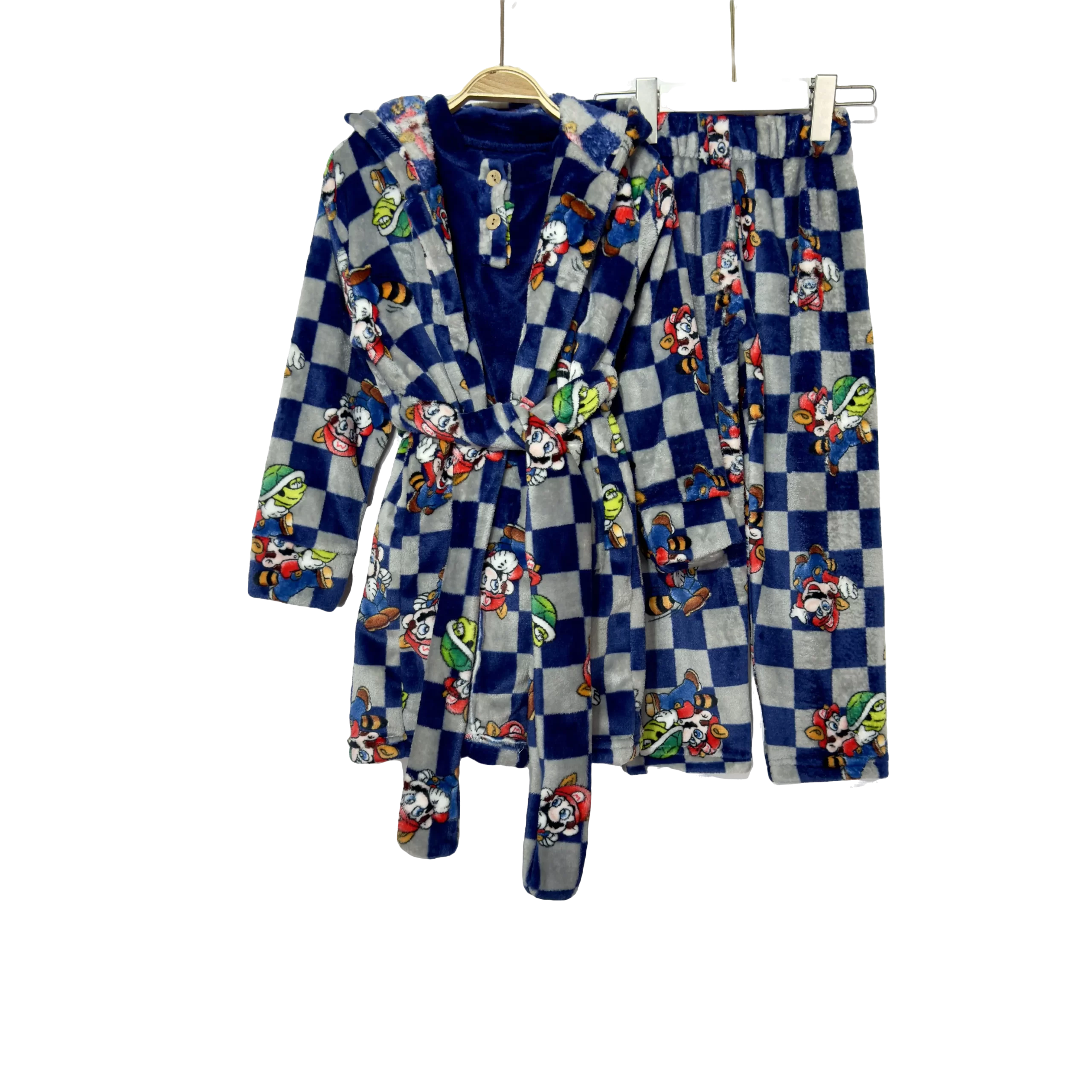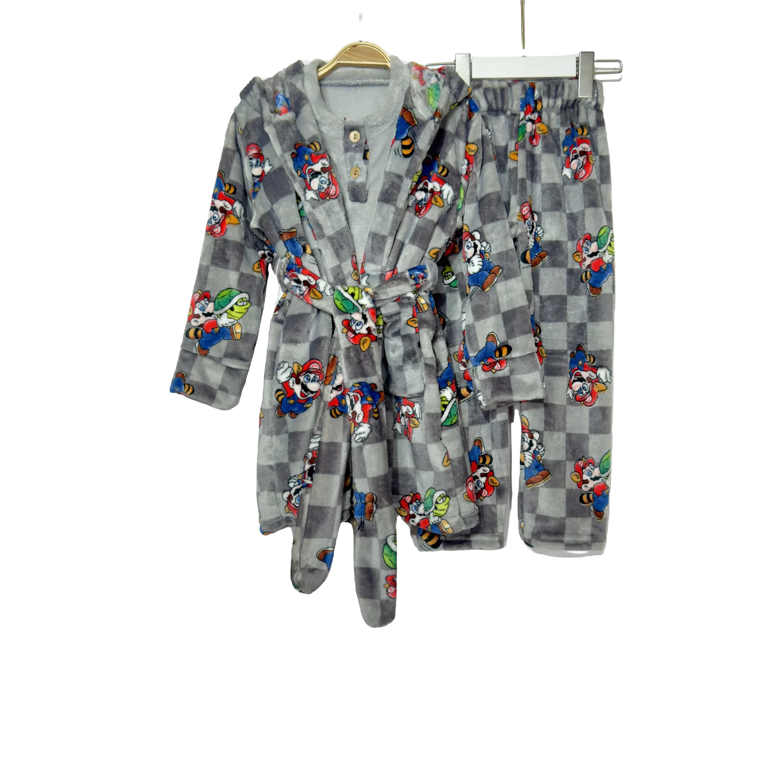 Soft mohair Mario robe kids’ pajamas, perfect for warmth and playful comfort.