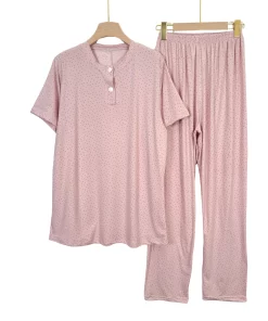 Plus size cotton pajama set with stylish prints