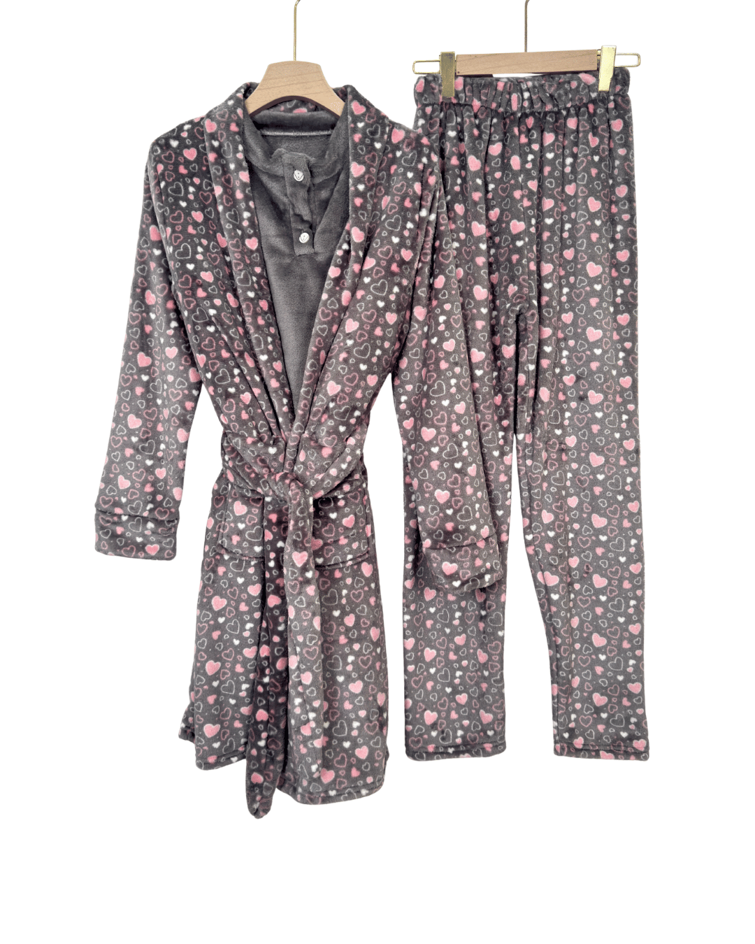Women’s Mohair 3-Piece Pajama Set with MINI HEART Print Robe – Soft Cozy Winter Wear
