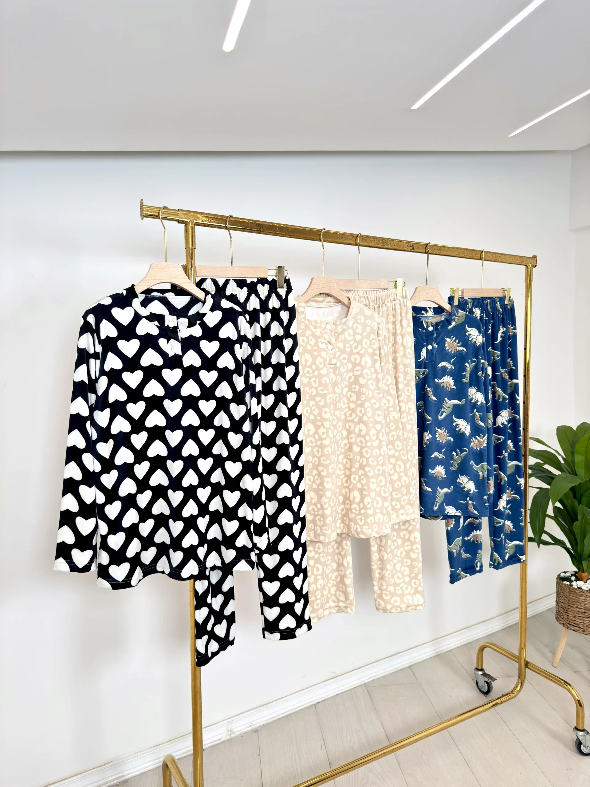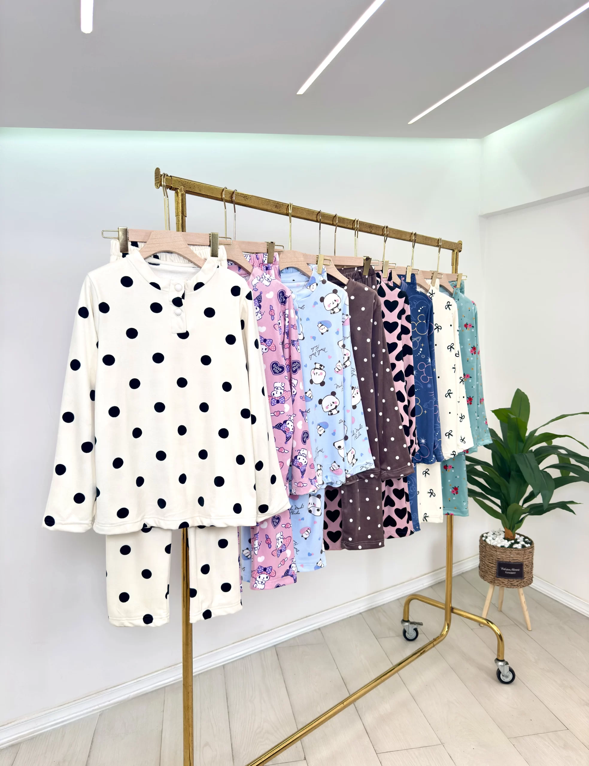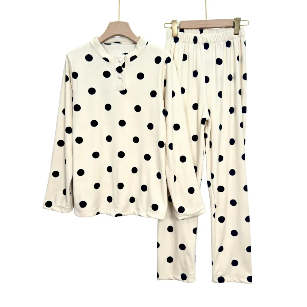 Women’s Velvet Pajama Set – Polka Dot Print (Regular & Plus Size)