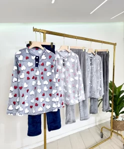Women’s Winter Pajama Set – 3-Layer Mohair Fabric with Hearts Print (Regular & Plus Size)