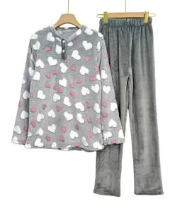 Women’s Winter Pajama Set – 3-Layer Mohair Fabric with Hearts Print (Regular & Plus Size)